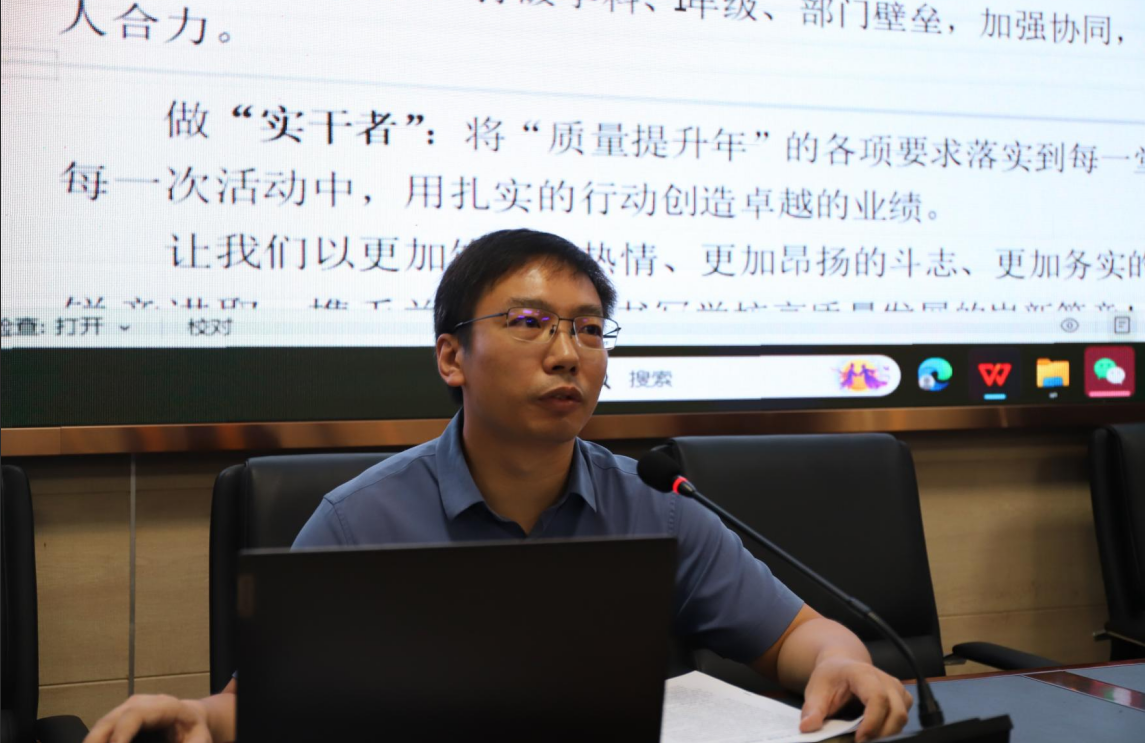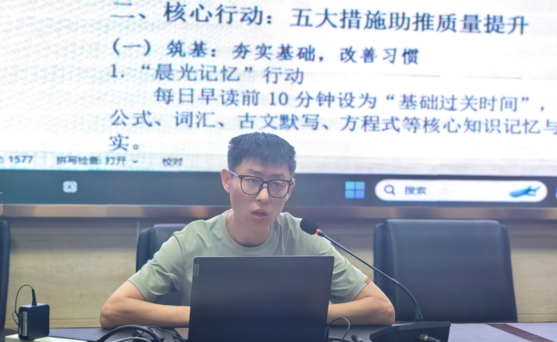 官孟琼作题为《强化立人教育品牌,持续提升办学质量》的报告。他提出,学校未来五年需从“规模增长”迈向“质量卓越”,构建“金字塔”式人才培养结构,朝着学生升学结构优、学业增值幅度大、教师实力强、课程体系活、学生发展全、治理品牌响等方面提升。如何迈向“质量卓越”?他号召全体教师要把握时代趋势、教育规律和学校定位之“大势”;谋影响学校全局发展的“大事”;成彰显立人教育品牌、推进学校特色办学之“大事”。对于本学期重点工作,他特别强调要探索“做实塔基、做强塔身、做高塔尖”高考质量建设新路径、丰富校本课程和学科活动、提升德育工作品位、提升教学研究和课堂教学的质量、落实考核评价等,倡导教师做“学习者”“研究者”“合作者”“实干者”,以更饱满的热情、高昂的斗志、务实的作风助力学校和株洲教育高质量发展。