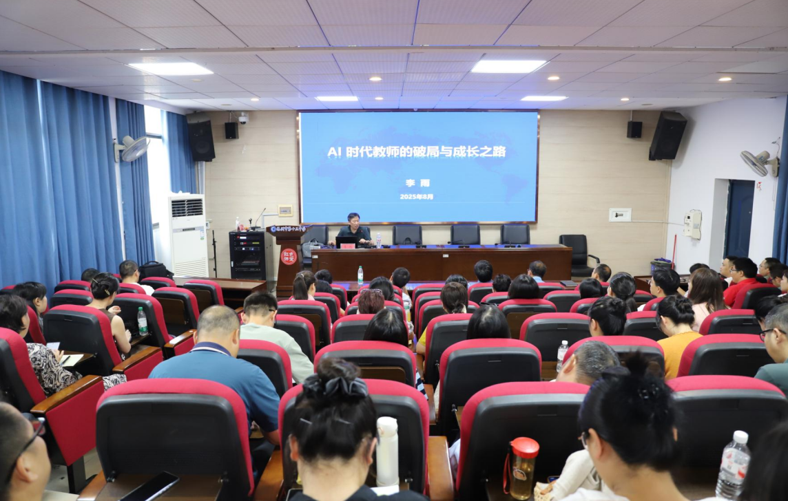 湖南省中小学教师信息技术与教育教学融合研究团队核心成员、株洲市教育技术装备所所长、株洲市人工智能赋能教育专家团队首席专家李雨为全体教职工作题为《AI时代教师的破局与成长之路》的讲座。