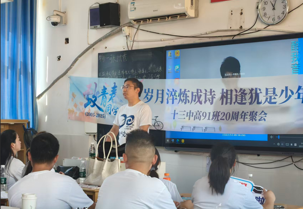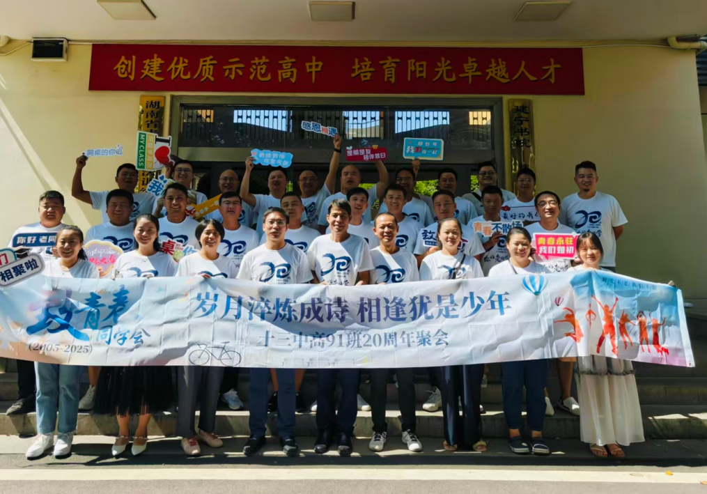 近日,株洲市第十三中学迎来了2005届高三91班毕业20周年重返母校的活动。30位同学从四海八方归来,携着岁月的沉淀与青春的余温,赴一场跨越二十年的秋日之约。昔日,他们沐浴着母校如“雨露”般的滋养;今朝,他们散作满天星辰在各自的领域绽放芳华。