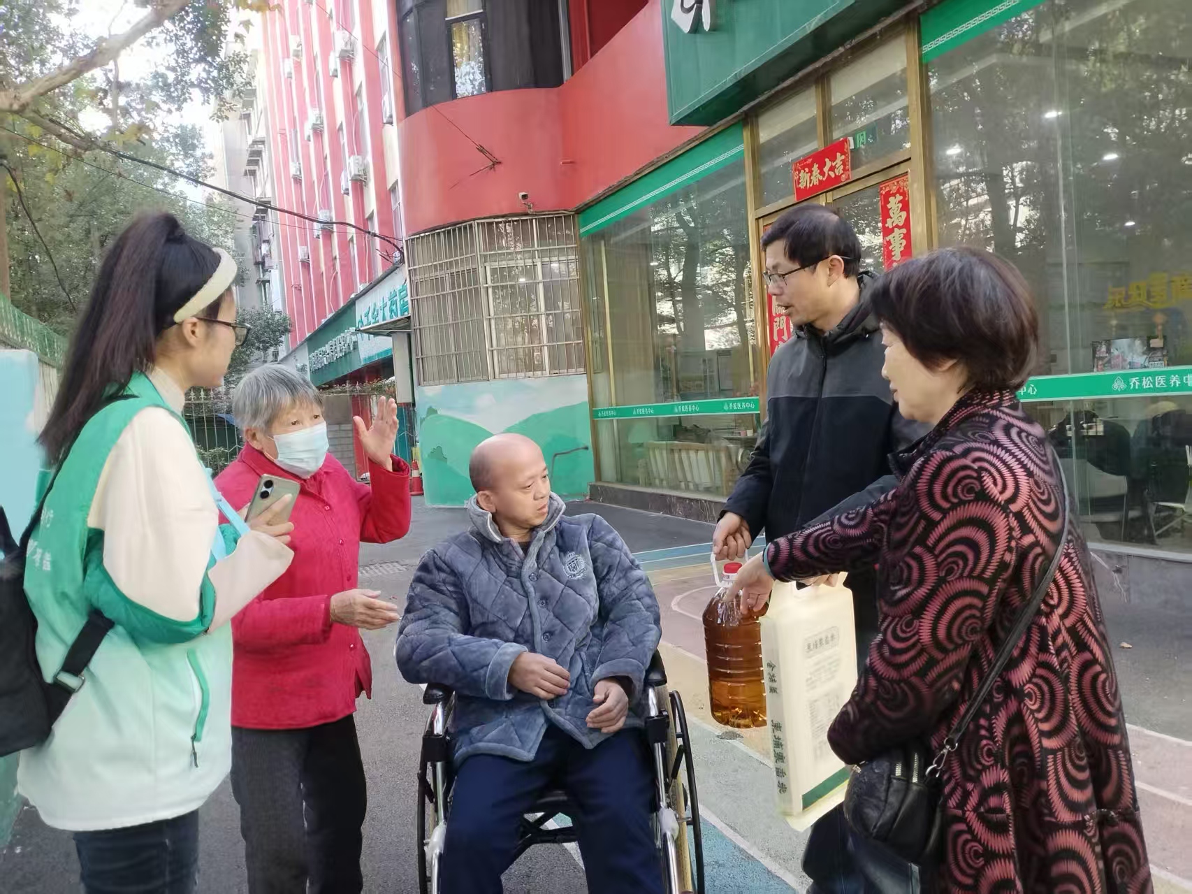 为确保捐助精准高效,在活动前期,民盟株洲市十三中支部在新任主委阳其保的带领下,主动与荷塘区石子头社区聋人协会主席刘慧群对接,详细了解辖区内残疾特困家庭的生活现状、实际需求及分布情况,最终确定了10户最需要帮扶的对象,确保捐赠物资能切实送到"急难愁盼"的群众手中。支部盟员们自发筹集资金,精心挑选了品质优良、符合家庭日常需求的粮油物资,并提前进行分装打包,为捐助活动做好充分准备。捐助现场,盟员志愿者们分组行动,将捐助的粮、油等物资逐一送到残疾特困户家中。在走访过程中,多户特殊家庭的困境让志愿者们深感揪心。其中,80多岁的黄大爷老两口均身患重疾,常年服药,行动不便,家中缺乏劳动力,生活拮据;另一户居民王大爷的儿子患有精神疾病,年过八旬的他独自承担起照料重任,生活压力巨大;还有小郑在大学期间遭遇安全事故,留下严重后遗症导致生活无法自理,全家仅依靠母亲每月800元的退休金艰难支撑。“感谢街道残联以及民盟的同志们惦记着我们,这些米和油够我们家吃好一阵子了,你们真是好人!”黄大爷的话语道出了所有受助家庭的心声。