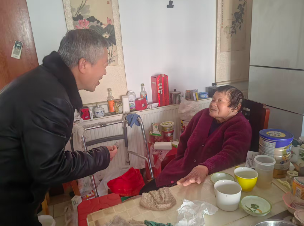 每到一户,服务小组都与老教师亲切交谈,细致询问身体与生活近况,将学校的牵挂送到他们身边。