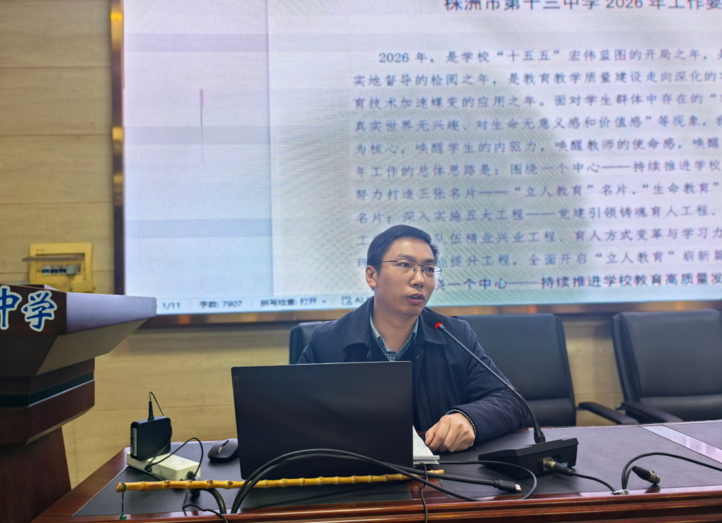 新春启序,万物向荣。为锚定学校 “十五五” 开局发展目标,确保 2026 年教育教学各项工作高效落地,2 月 28日上午,株洲市第十三中学举行 2026 年春季开学工作部署会,全体教职工齐聚一堂,共同开启新学期的育人新征程,会议由曾锐文副校长主持。
