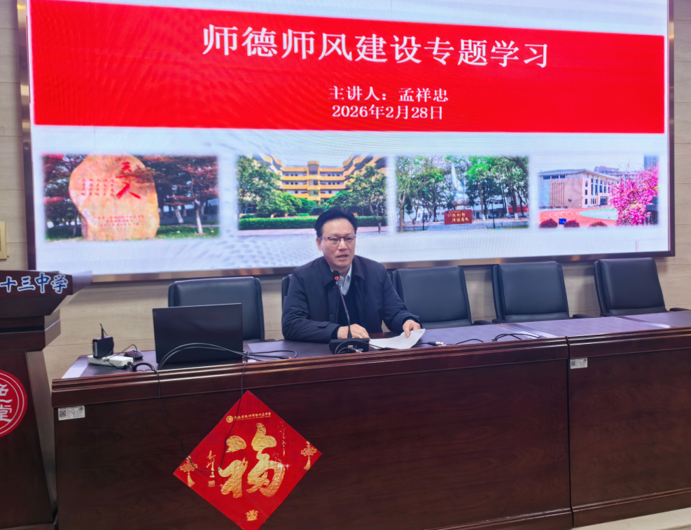 校党委书记孟祥忠作题为《以“三马精神”强党建引领,以“精致管理”强质量建设》的讲话。他期望全体教职工把 “跃马扬鞭的勇气、万马奔腾的活力、马不停蹄的干劲” 融入血脉,将党建引领与精致管理深度融合,锚定 “立德树人” 根本任务,坚守 “尚德立学、自强不息” 校训,以实干笃行诠释教育初心,以奋勇争先书写十三中新篇;要求全体教职工提高政治站位,做大思政、正能量的引领者,将株洲红色文化、校友榜样力量、“郊区一中”奋斗史转化为鲜活教材;希望全体教职工立足本职岗位,注重“精耕细作”,落实“精致管理”,主动拥抱数字时代,以大数据赋能精准教学,做敬业爱岗的示范者、新时代新教育的实践者;希望大家深化教育改革,完善“五育并举”体系,落实“健康第一”要求,开发多元校本课程,丰富活动育人载体;勉励大家坚持终身学习,锤炼过硬本领,努力成为新时代的“大先生”。